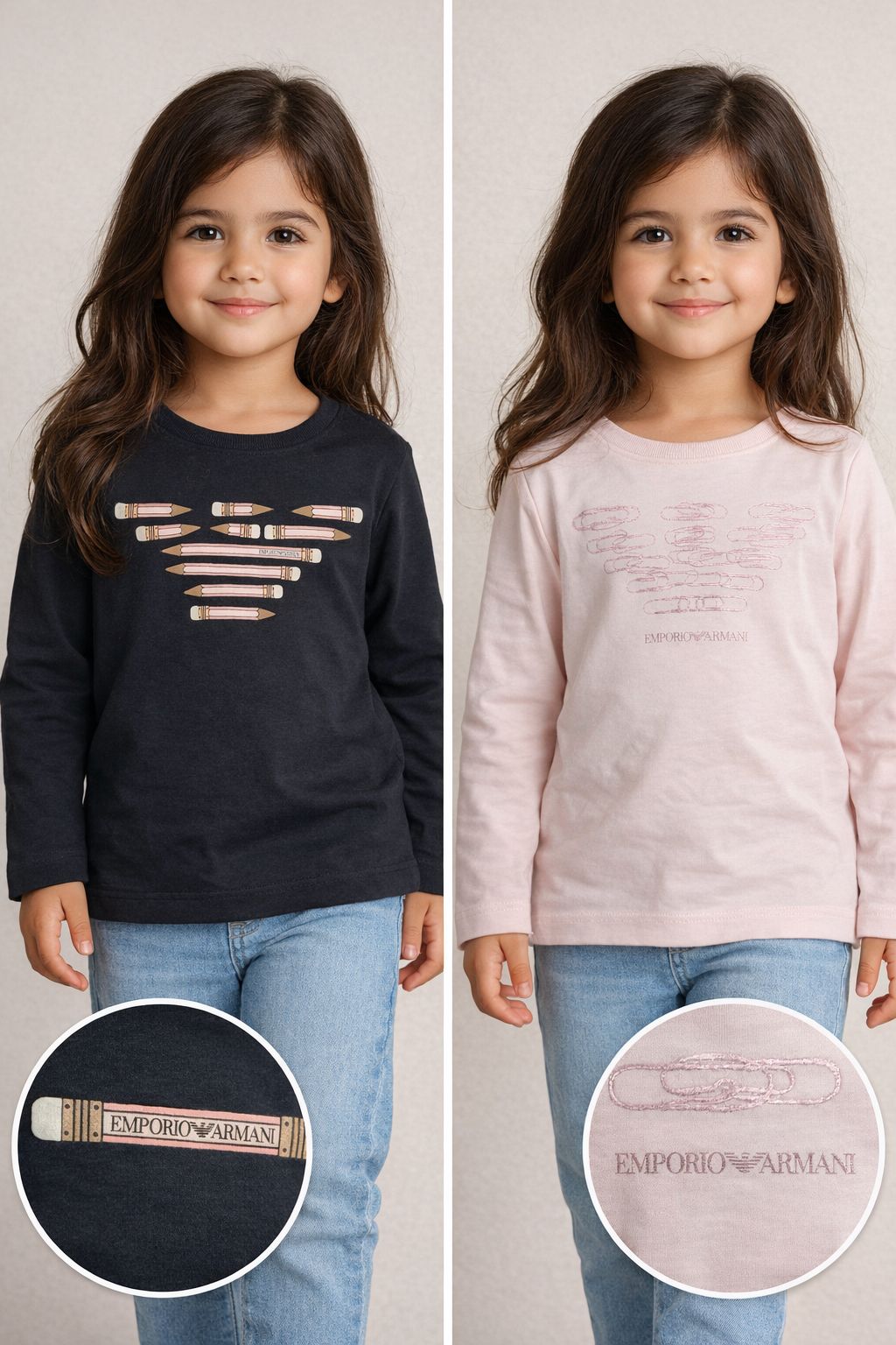 ARMANI SET T-SHIRTS LONG SLEEVES NAVY BLUE/PEACH