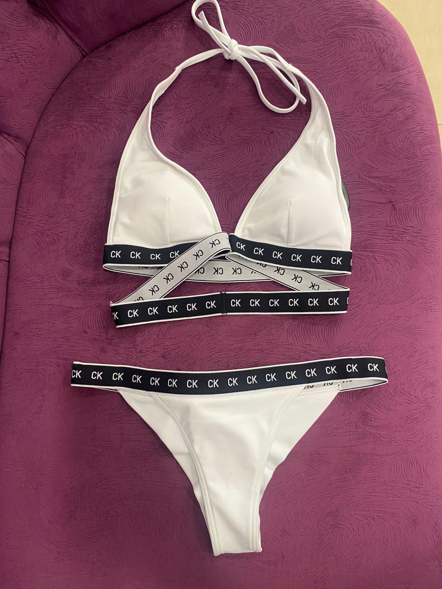 CK BIKINI BRAZILIAN WHITE BRANDED LINES CROSS TOP