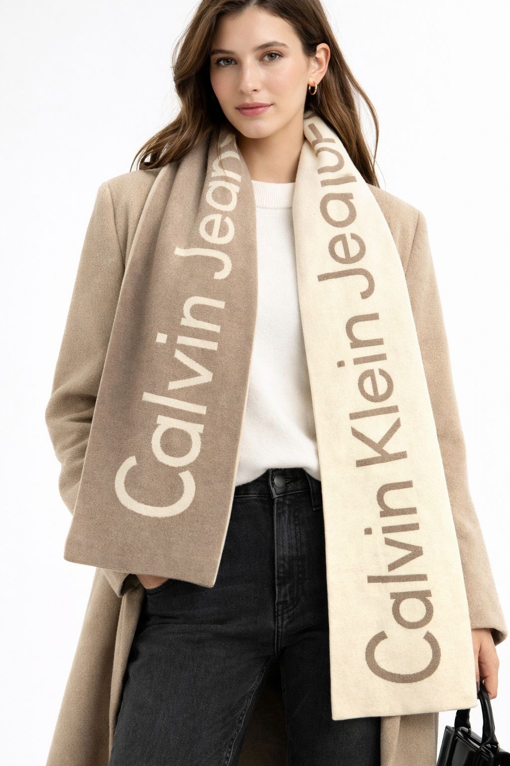 CK LOGO WOVEN SCARF BROWN/BEIGE