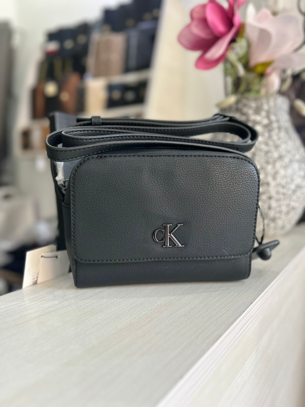 CK MINIMAL MONOGRAM CAMERA BAG BLACK
