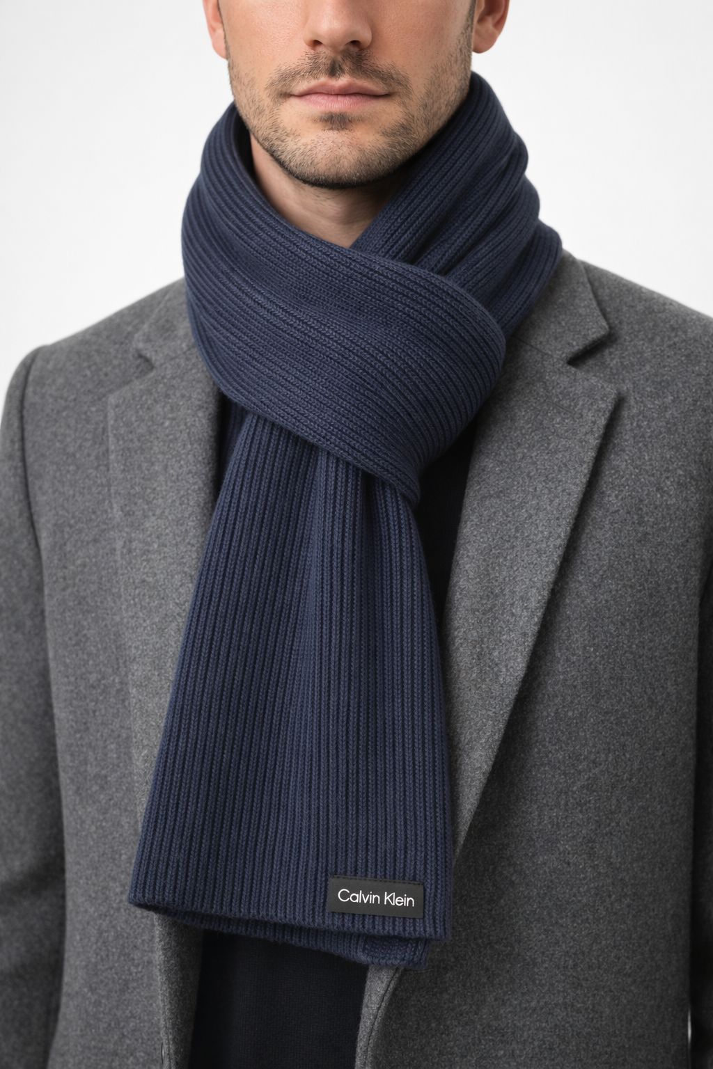 CK SCARF MEN CLASSIC COTTON RIB KNIT SCARF NAVY BLUE