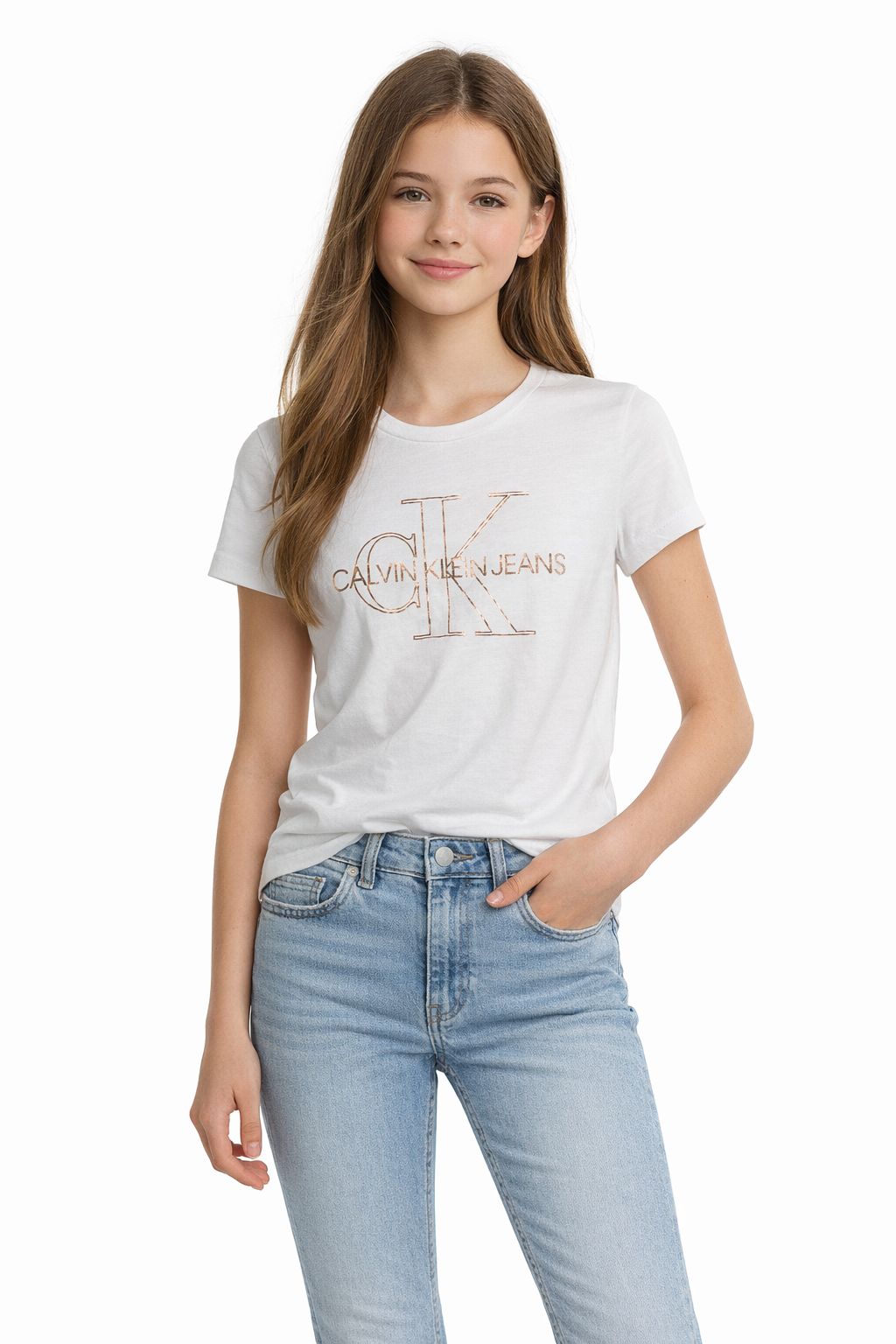 CK WHITE TSHIRT BRONZE CK