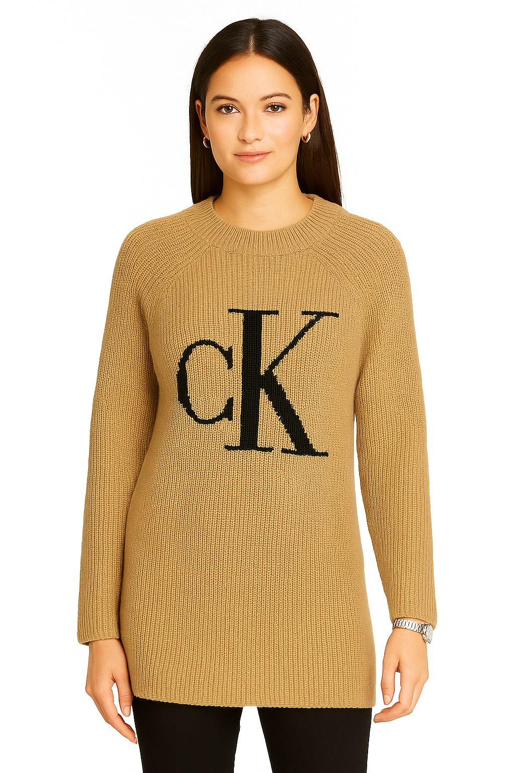 CK WOOL CAMEL SWEATER BLACK LOGO