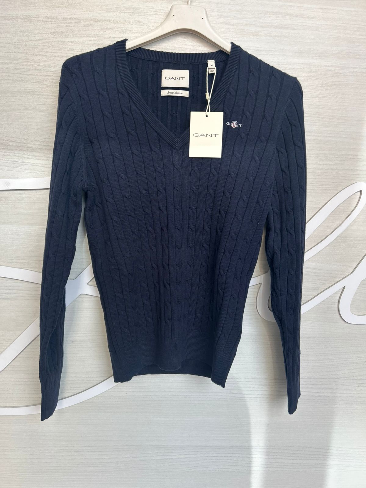 GANT STRETCH COTTON CABLE V NECK NAVY BLUE