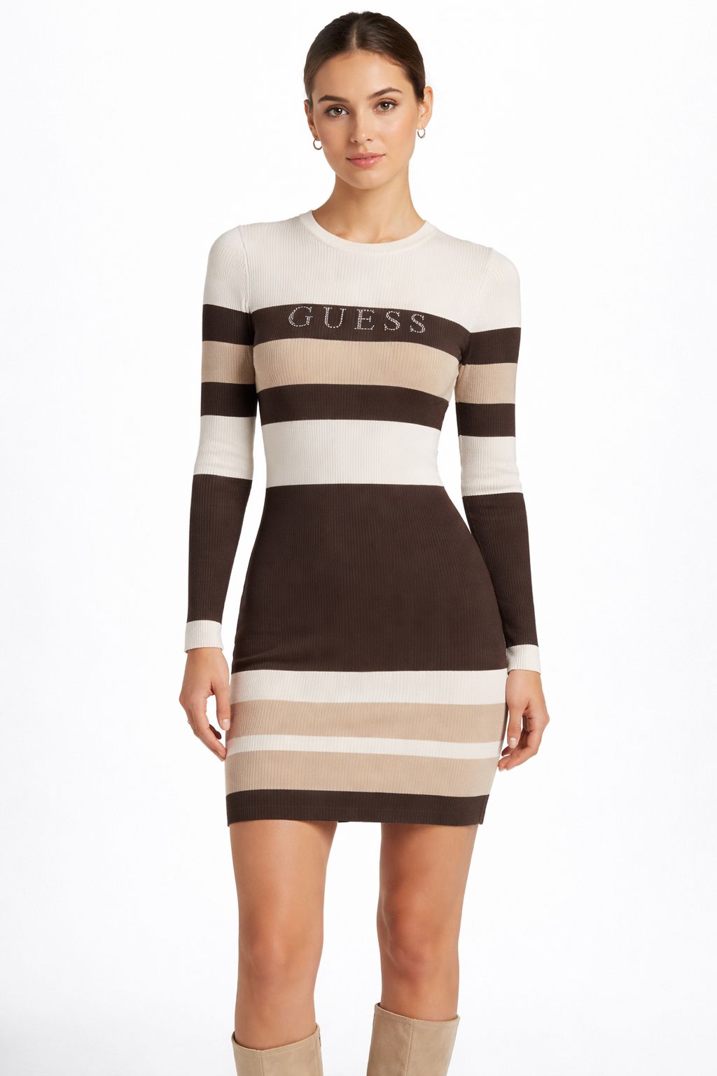 GUESS AMIRI STRIPE SWEATER DRESS DARK COFFEE MULTI