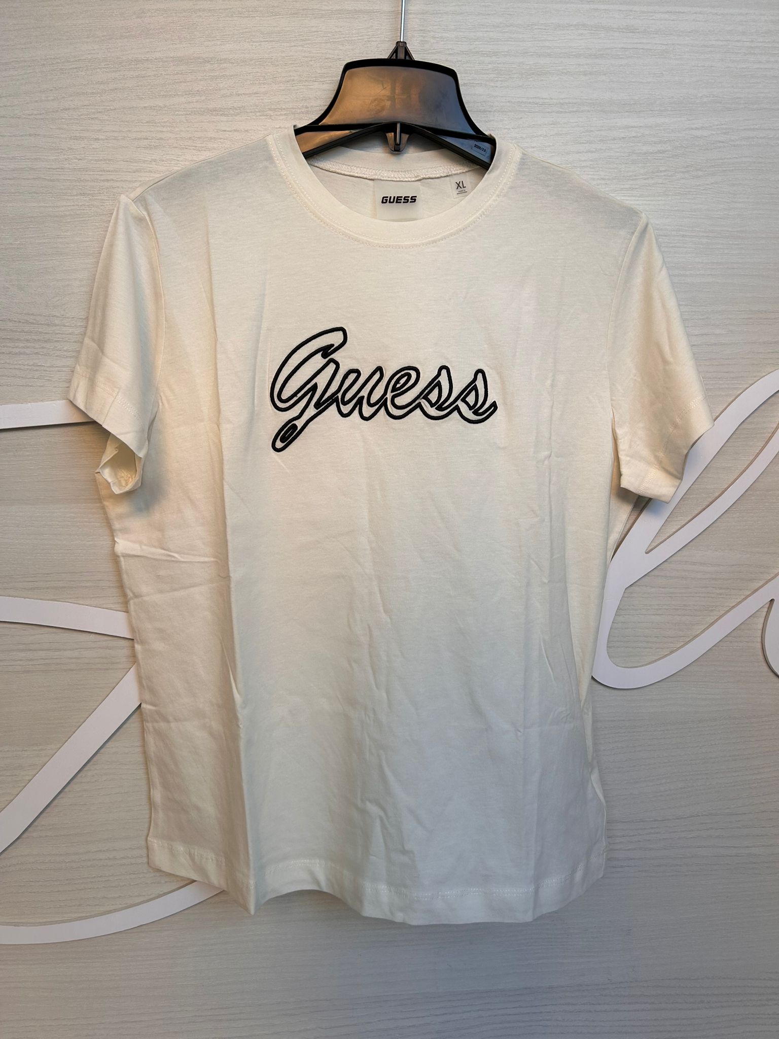 GUESS BEIGE T-SHIRT BLACK LOGO