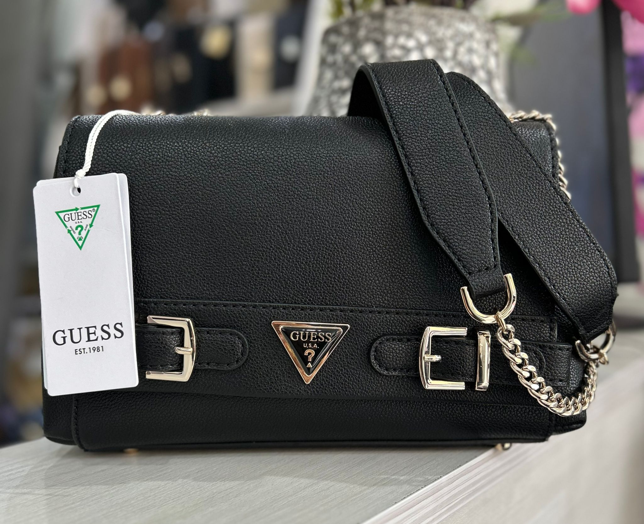 GUESS BLACK CROSSBODY DOUBLE CHAIN
