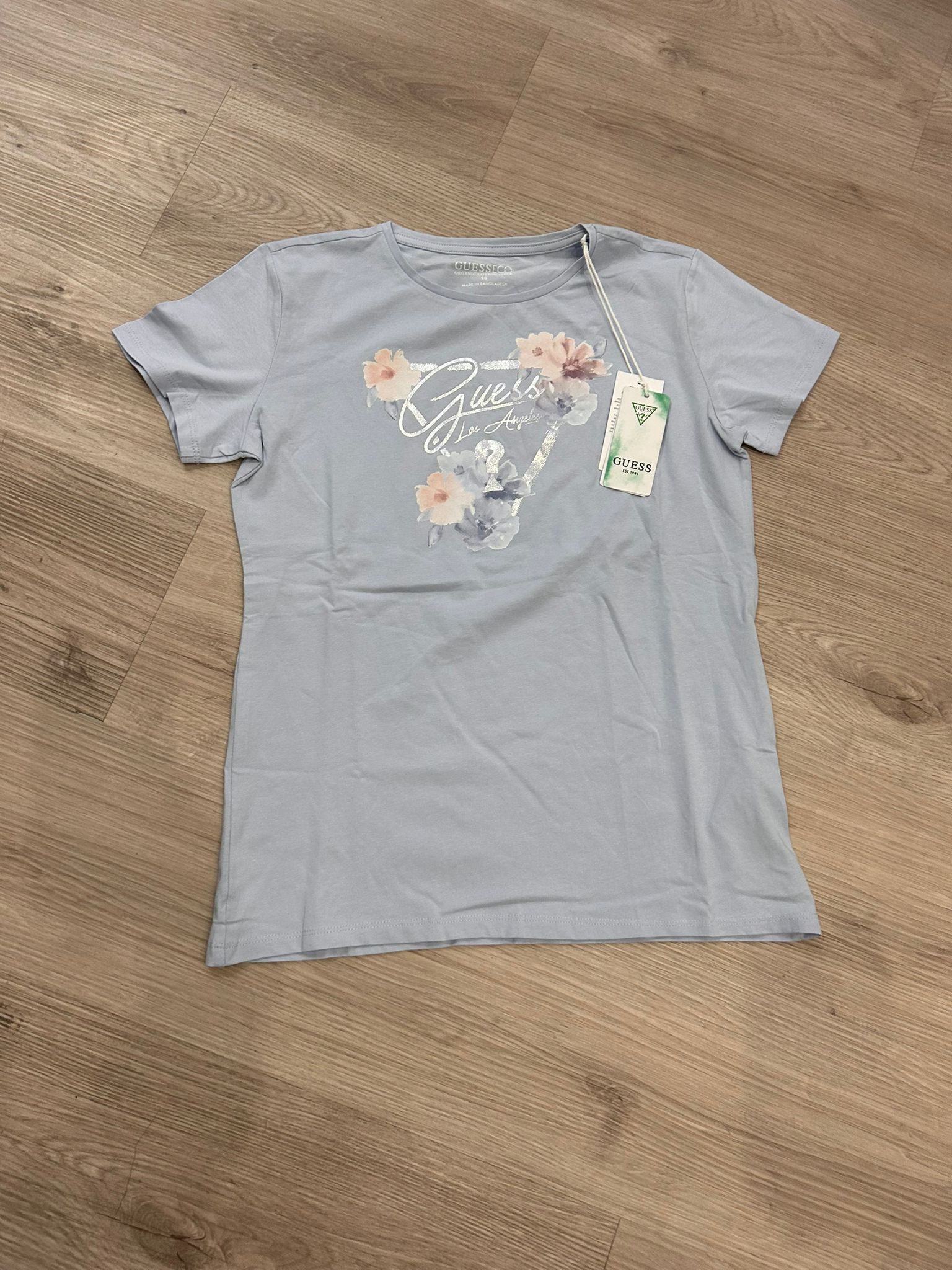 GUESS LIGHT BLUE T-SHIRT SILVER LOGO