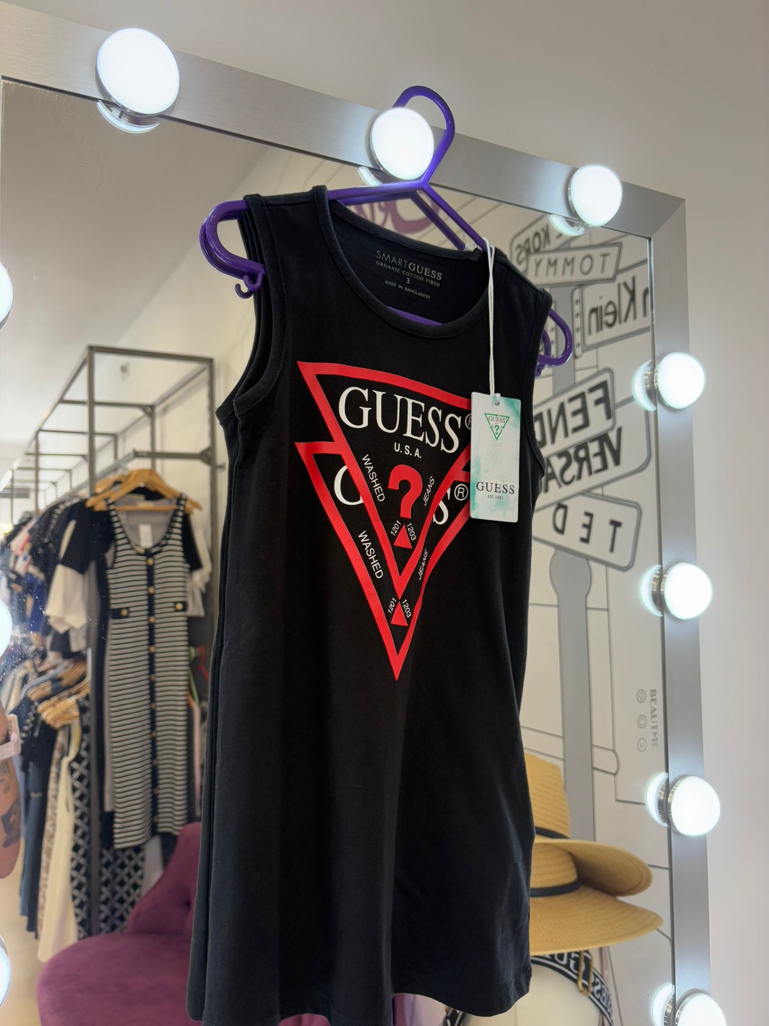 GUESS NO SLEEVE BLACK DRESS RED LOGO