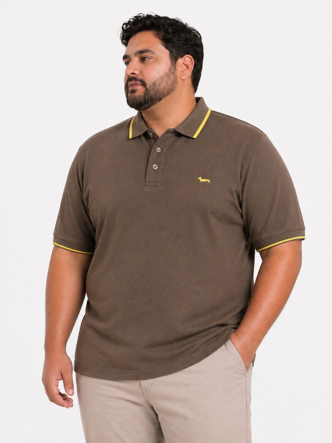 HB POLO TSHIRT BROWN/YELLOW EDGES
