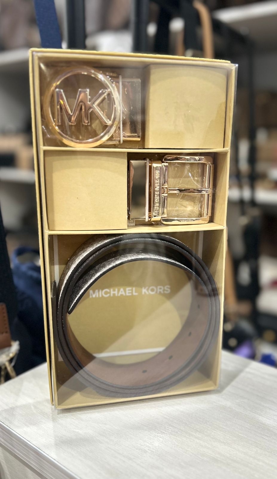 MK BOX BELT VANILLA/TAN