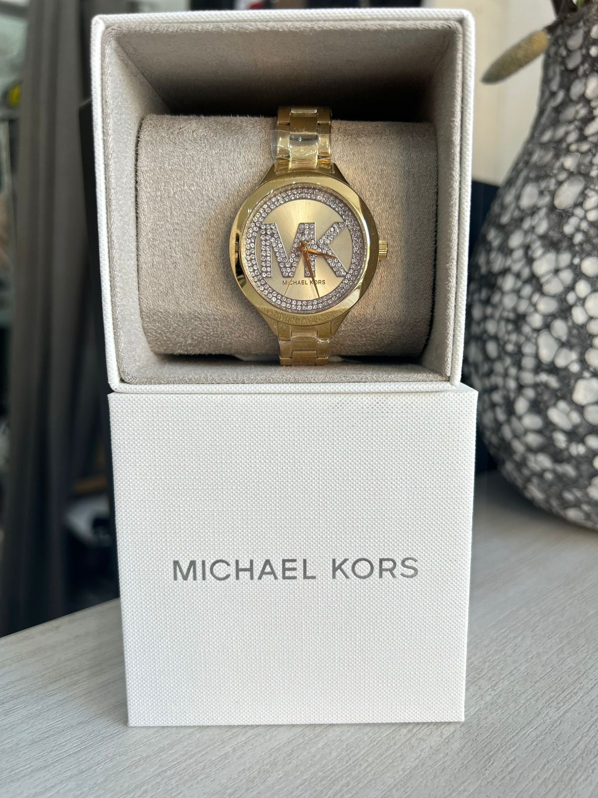 MK GOLD WATCH LARGE WITH SILVER SHIMMER