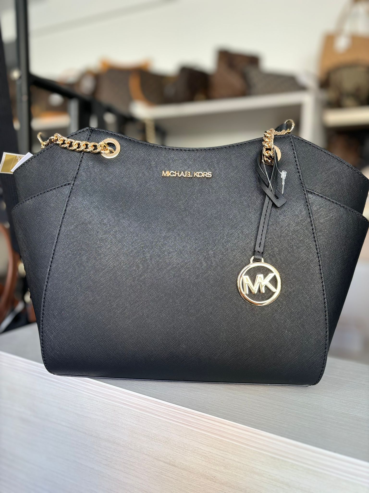 MK JET SET CHAIN SHOULDER TOTE BLACK