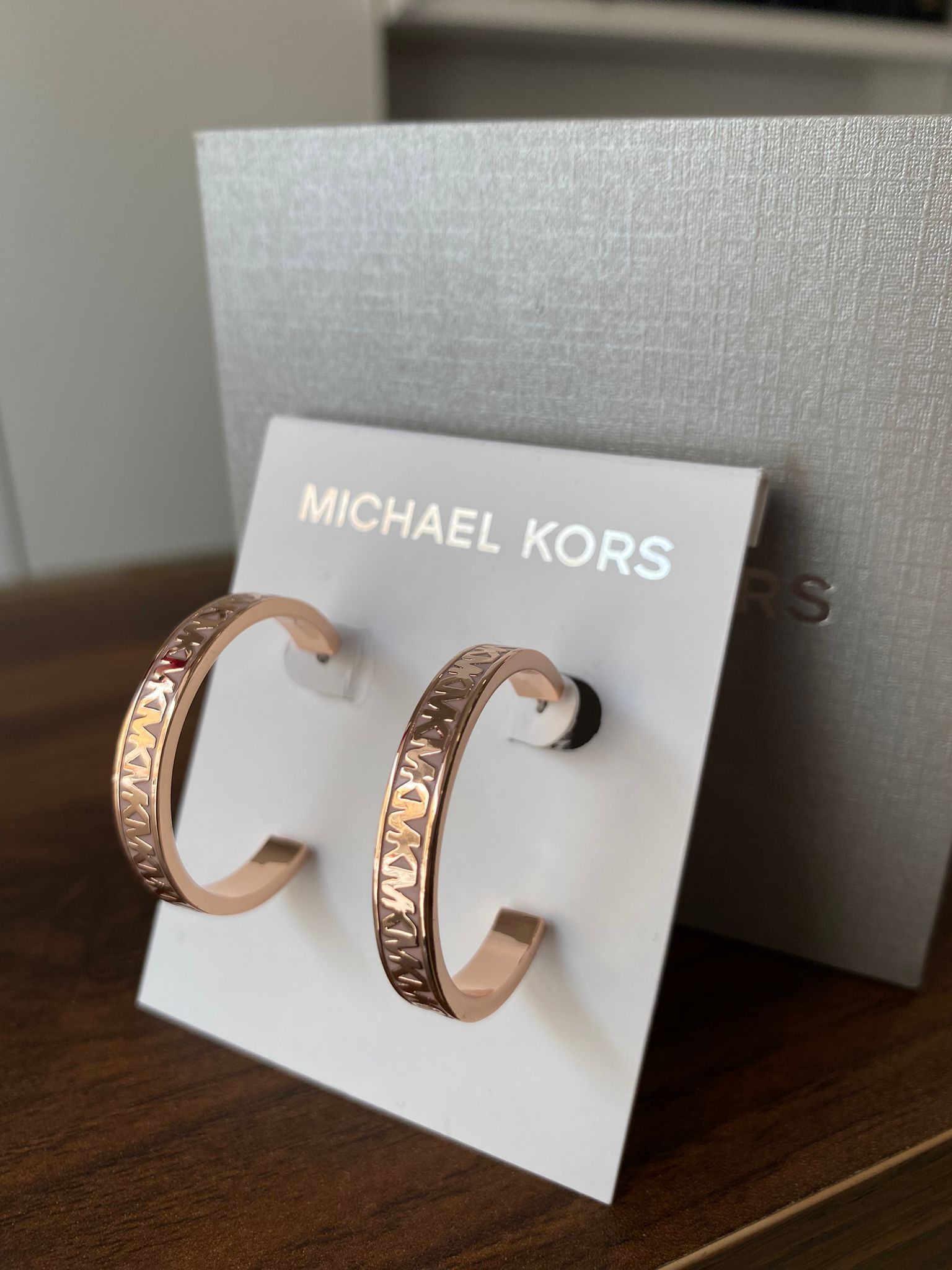 MK ROSE GOLD HOOPS BRANDED PATTERN