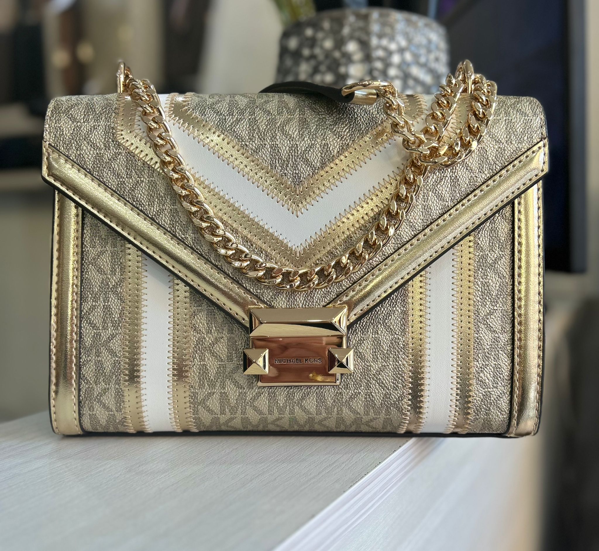 MK WHITNEY FLAP CHAIN SHOULDER BAG PALE GOLD
