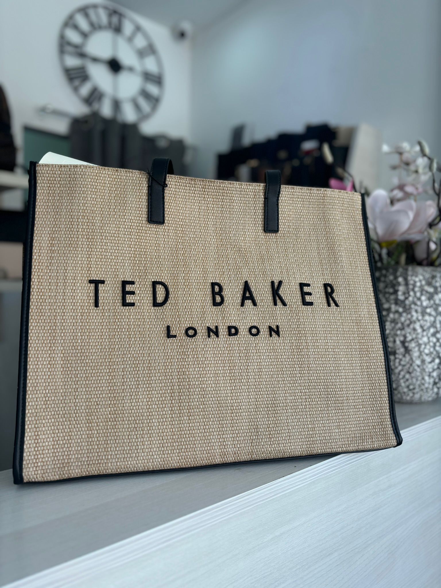 TED BAKER RAFFIA LARGE ICON BAG NATURAL