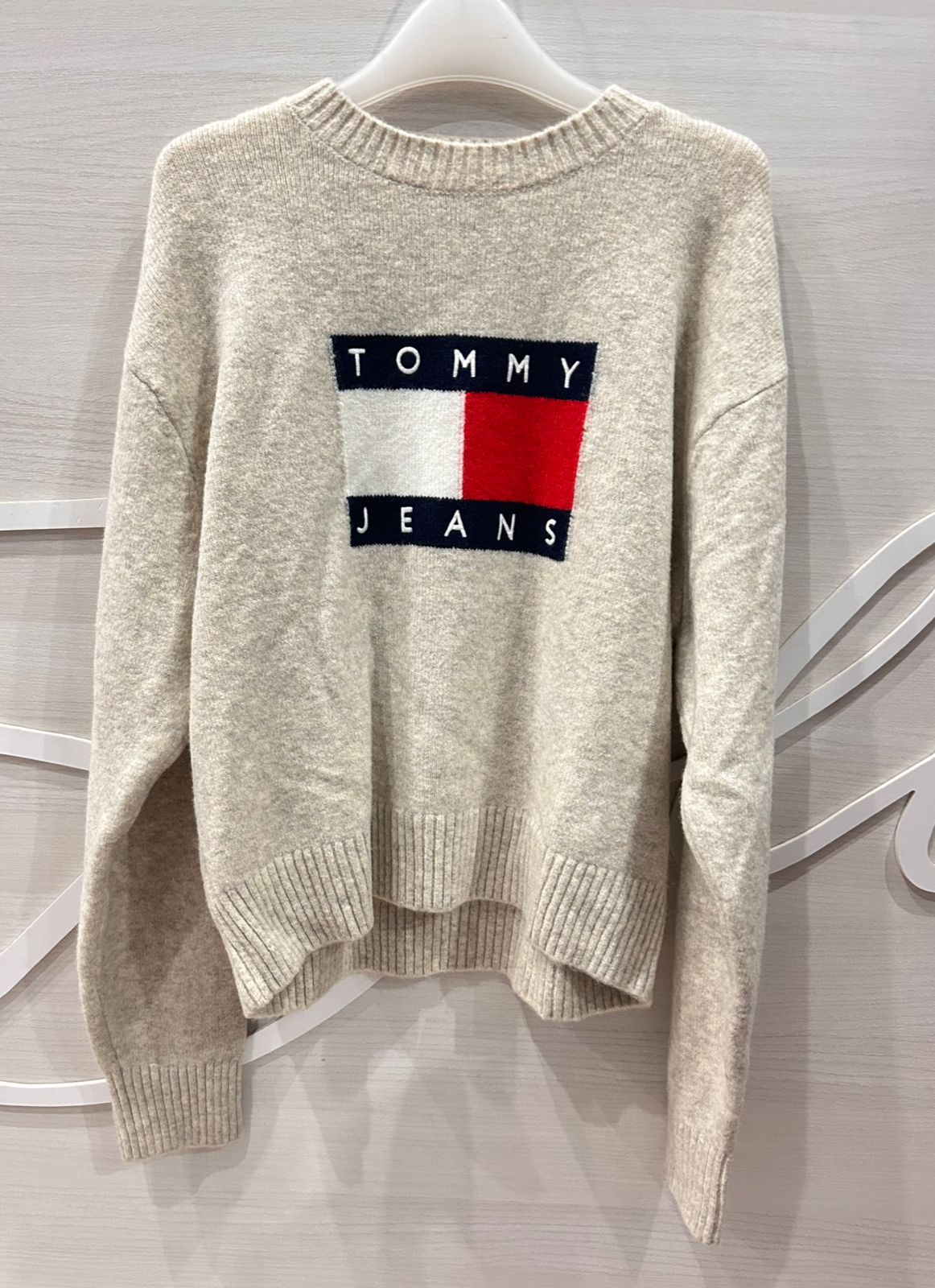 TJW MELANGE FLAG SWEATER EXT BEIGE