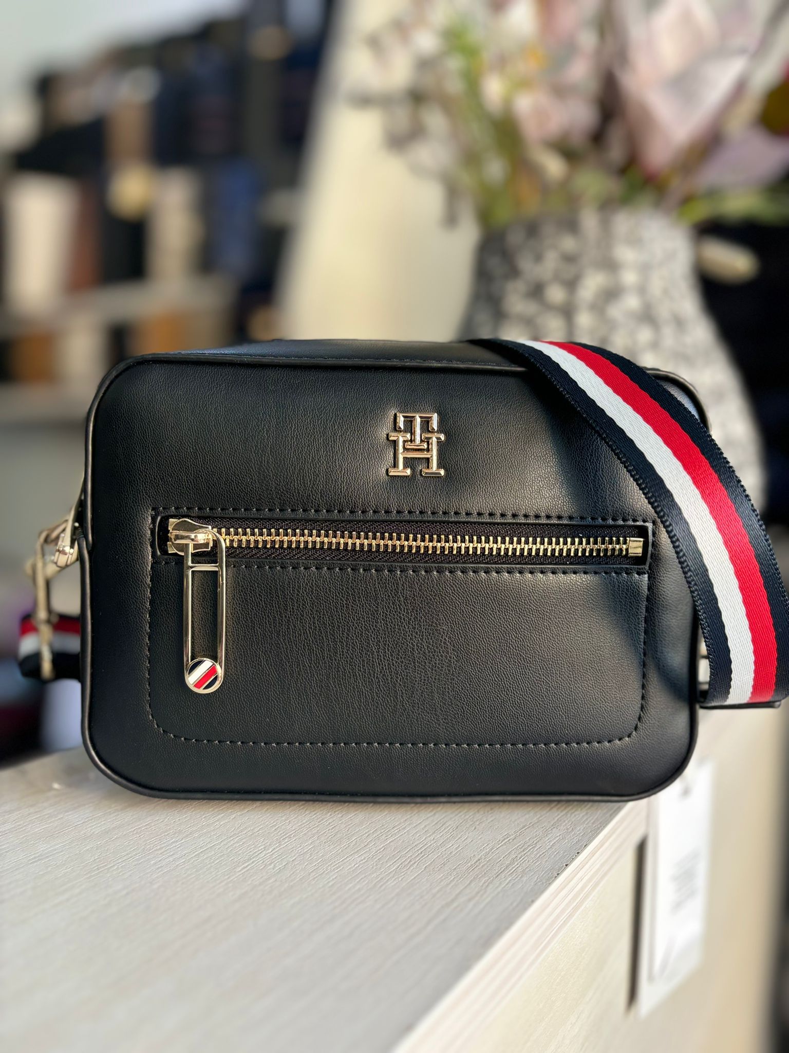 TOMMY ICONIC CAMERA BAG BLACK FLAG STRAP