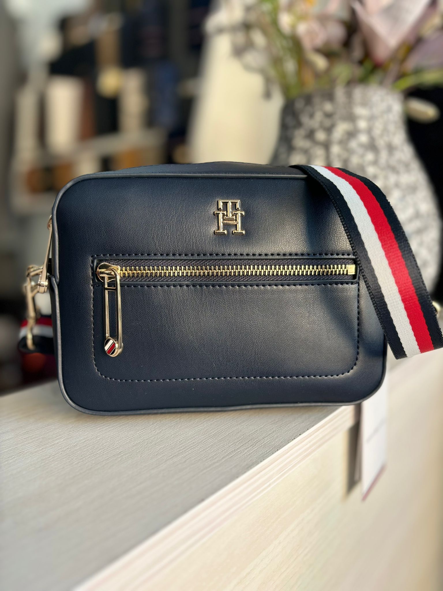TOMMY ICONIC CAMERA BAG NAVY BLUE FLAG STRAP